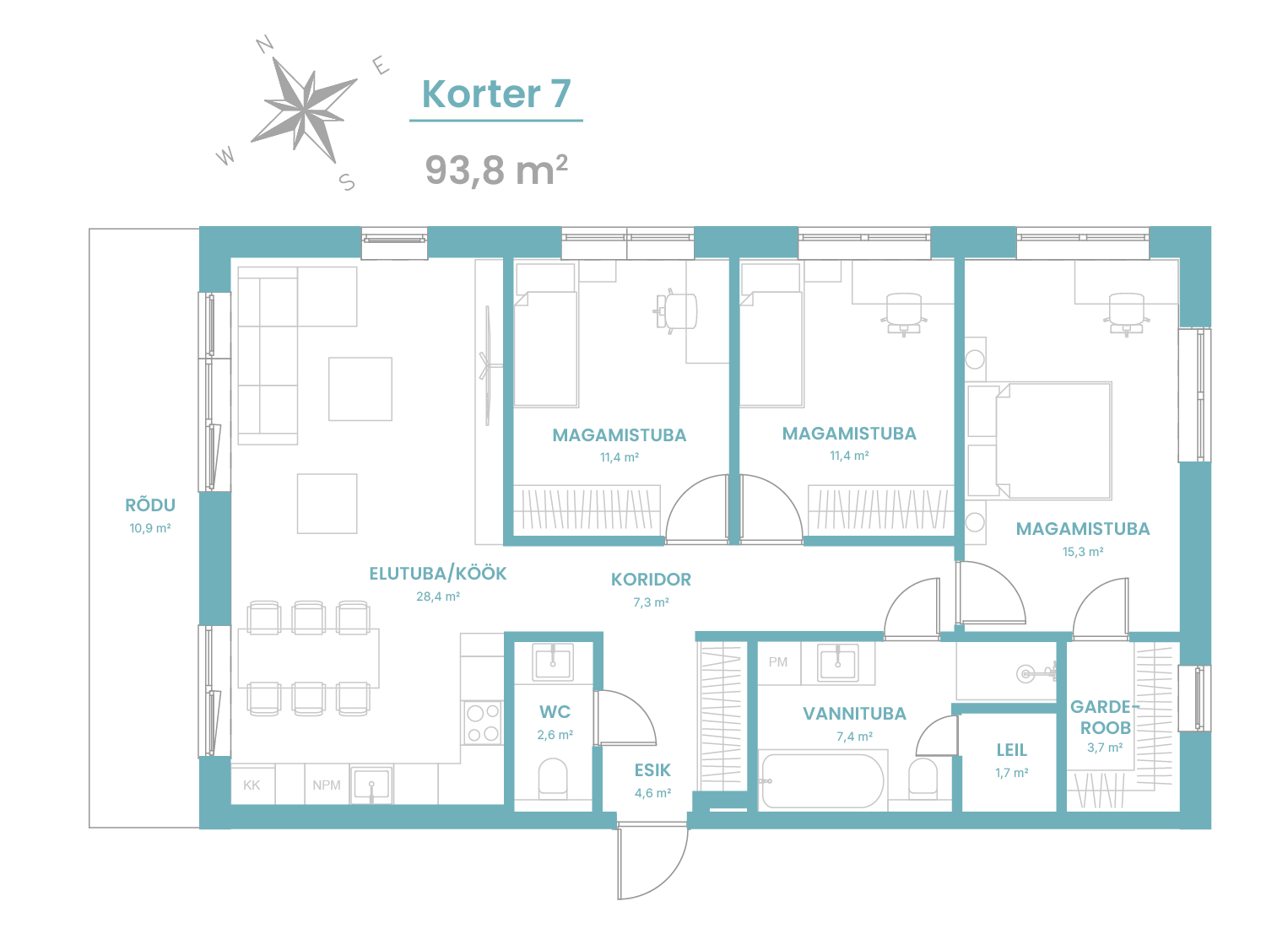 Korteri pindala: 93,8 m2